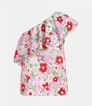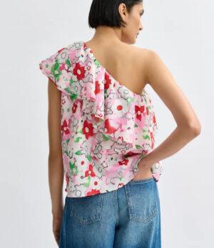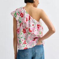ESSENTIEL ANTWERP Top à une épaule et volants blanc cassé et multicolore