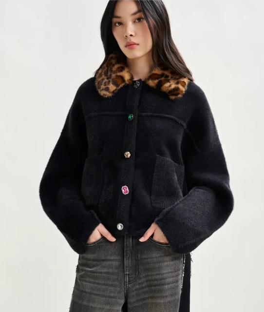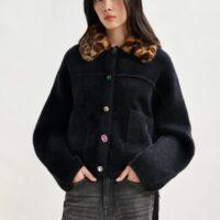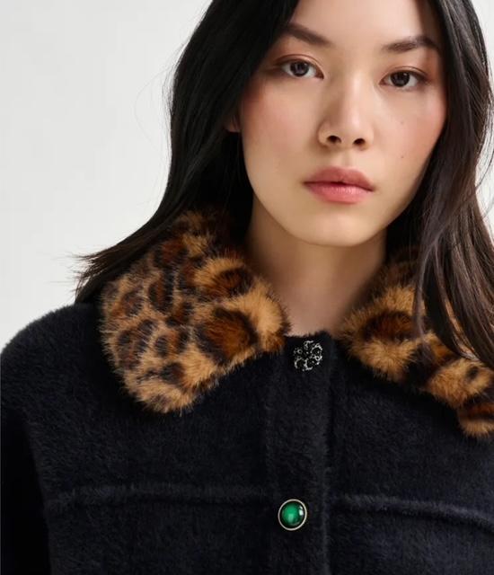 Soyez le premier à laisser votre avis sur “ESSENTIEL ANTWERP Cardigan noir avec col amovible en fausse fourrure léopard”