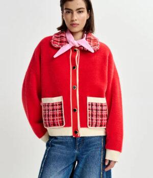 Soyez le premier à laisser votre avis sur “ESSENTIEL ANTWERP Cardigan texturé rouge et blanc cassé”