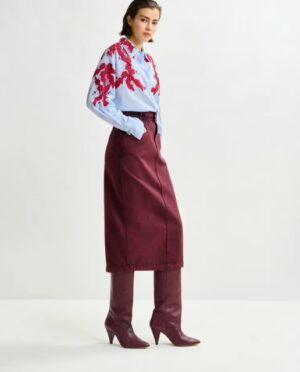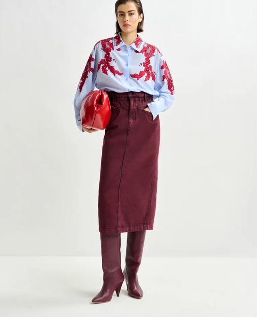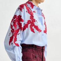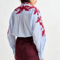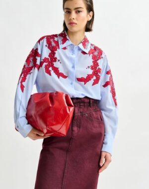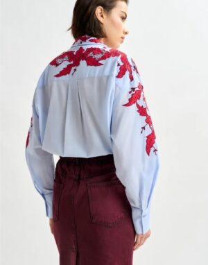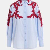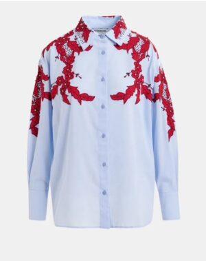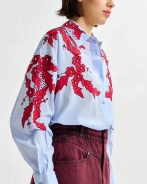 Réalisée en 100 % coton, cette chemise présente une coupe décontractée avec une silhouette boxy et une emmanchure basse qui renforce son allure détendue. Elle est ornée d’une broderie de fleur complexe agrémentée de strass. La fermeture par boutonnage classique s’accompagne d’un ourlet arrondi avec de subtiles fentes latérales et un pan légèrement plus long dans le dos. Idéale pour rehausser vos tenues de tous les jours avec une touche tendance.