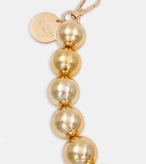 • Sculpté à partir de perles polies aux tons métallisés, ce bijou polyvalent est conçu pour servir à la fois de collier affirmé que d’ornement pour embellir votre sac préféré. Les maillons sphériques oversize créent une silhouette élégante et moderne, complétée par une breloque circulaire raffinée. Le fermoir double mousqueton assure une fixation solide, qu’il soit porté autour du cou ou attaché à une poignée de sac pour une touche raffinée.