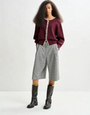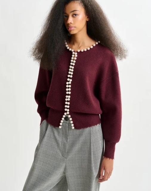 Cardigan confortable qui présente une coupe décontractée, soulignée par une emmanchure basse et des manches volumineuses. L’encolure et l’ouverture sur le devant sont agrémentées de perles, qui lui donnent une allure élégante. Doté d’une encolure ronde, de bords effilochés et d’une fermeture par agrafe et crochet discrète, il est une option chic et facile pour toutes les occasions.