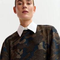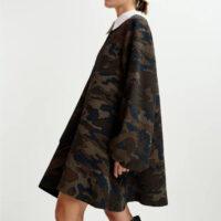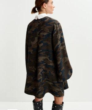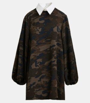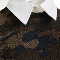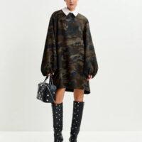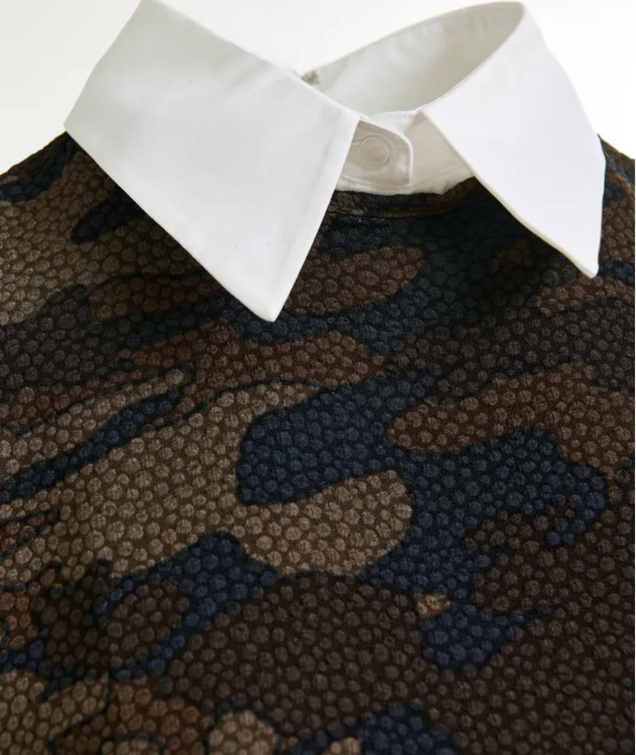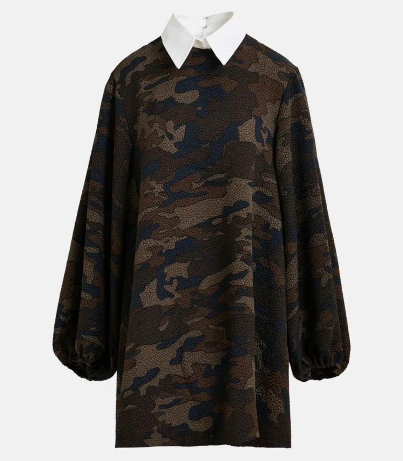 Mini-robe trapèze oversize, confectionnée à partir d’un mélange de polyester recyclé, dans une silhouette à emmanchure basse et manches larges. La fermeture à glissière dissimulée assure une finition lisse, tandis que le col blanc amovible ajoute une touche de polyvalence et de raffinement : parfait pour passer d’un look dynamique à un look raffiné. Avec son imprimé camouflage, ce haut allie structure et douceur avec une allure contemporaine.