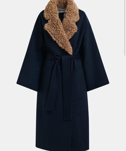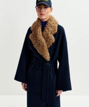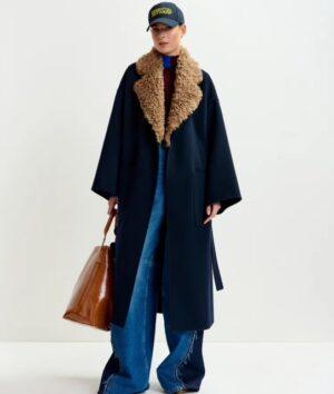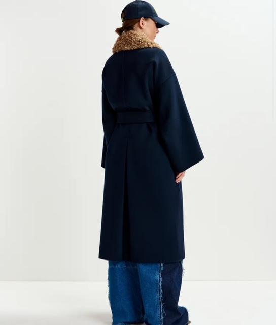 Tissé d’une laine pure, ce manteau a été soigneusement feutré pour lui donner davantage de douceur et de lustre. Sa légère coupe trapèze est pourvue de poches plaquées pratiques, d’élégants revers crantés, d’une emmanchure basse et d’une ceinture pour la porter fermée. Le col amovible en fausse fourrure ajoute une touche de polyvalence et de raffinement. Cette pièce intemporelle donnera du lustre à chaque tenue, saison après saison.