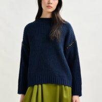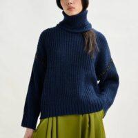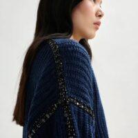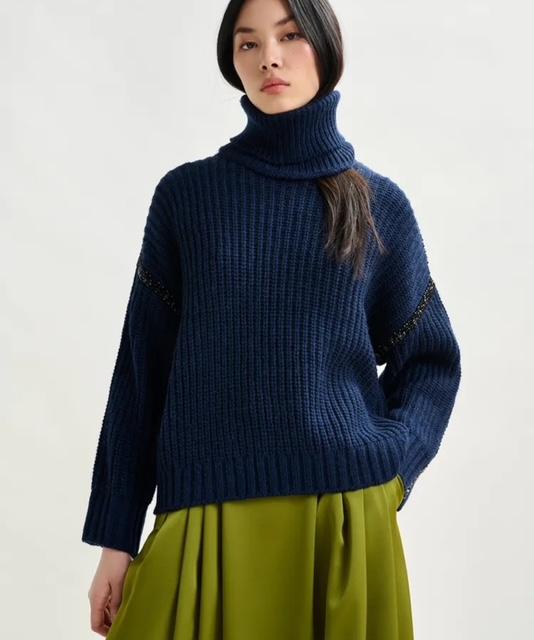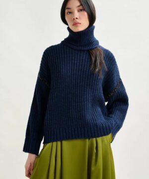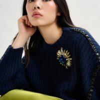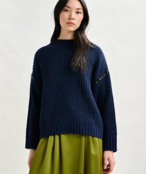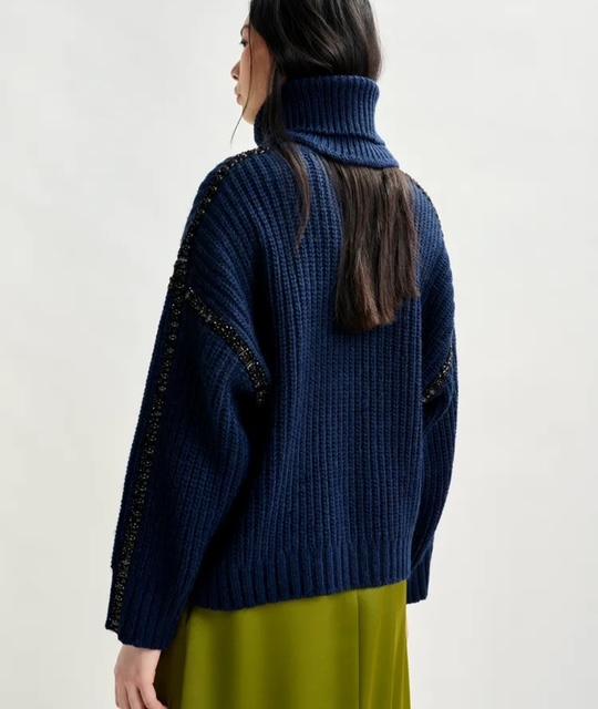 Soyez le premier à laisser votre avis sur “ESSENTIEL ANTWERP Pull en laine mélangée bleu marine avec col amovible et strass”