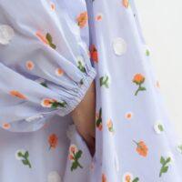 Soyez le premier à laisser votre avis sur “ESSENTIEL ANTWERP robe genou bleu clair à col mandarin et ornements verts et orange”