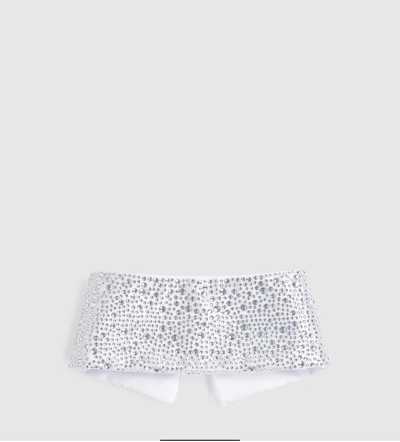 • Col en satin avec ornement en strass façon all-over