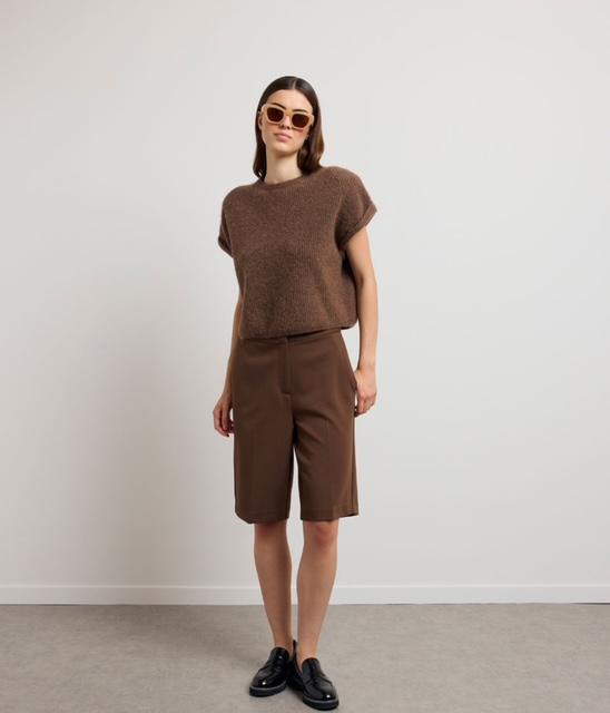 Confectionné dans une maille texturée au toucher moelleux, le pull SOLAR se distingue par son volume simple et structuré. Sa coupe boxy, légèrement raccourcie et sans coutures aux épaules, offre une silhouette épurée qui mise sur le confort. Les manches tombantes et les finitions en bord-côte renforcent son esprit cosy, tandis que les épaulettes viennent structurer l’ensemble. Une pièce douce mais pleine de caractère. À superposer sur notre chemise INDIANA avec le pantalon JONES pour un look plus pointu, ou simplement sur un pantalon taille haute.
