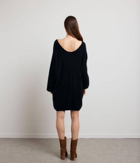 LAUPER est une robe pull courte en maille fluffy, douce et confortable, pensée pour apporter un maximum de chaleur. Sa coupe ample et ses manches ballon lui donnent une allure casual et enveloppante. Entièrement réversible, elle propose deux encolures arrondies, dont l’une, plus échancrée, signe le détail emblématique de la maison. Portez-la ceinturée pour structurer la silhouette et composer un look plus habillé.