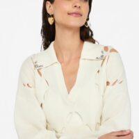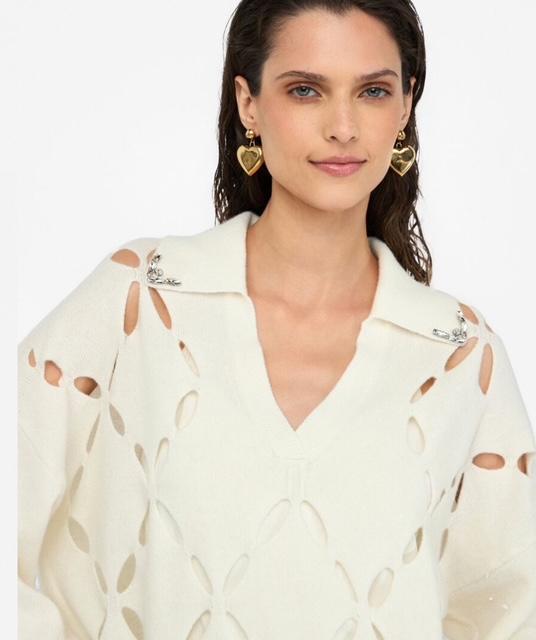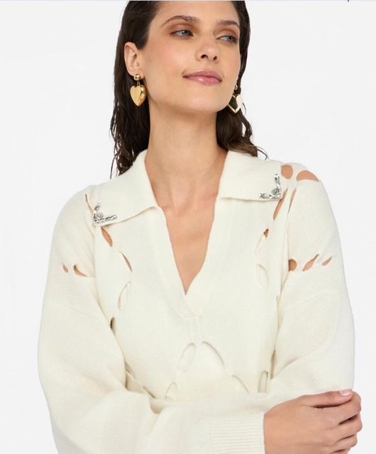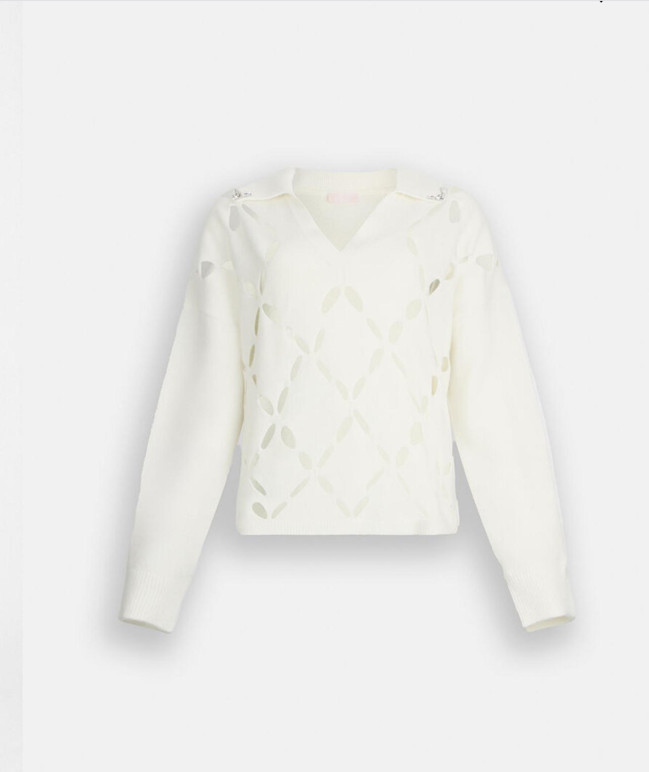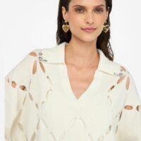 - Un délicat motif géométrique en losange confère légèreté et transparence au vêtement. Sa texture aérienne et sophistiquée est agrémentée de broderies bijoux pour ajouter une touche de glam à vos looks du quotidien.