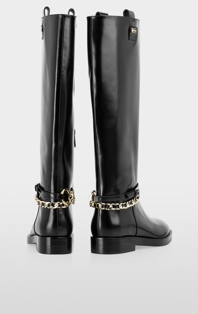 Bottes d’équitation classiques en cuir de haute qualité avec une brillance élégante. Doublure en cuir pour un confort optimal, semelle en caoutchouc robuste pour un maintien sûr. La fermeture éclair latérale facilite l’enfilage, tandis que l’élégante chaîne à maillons apporte une touche stylée au design. Talon plat pour une marche confortable.