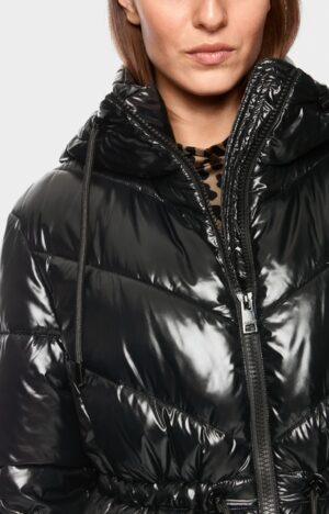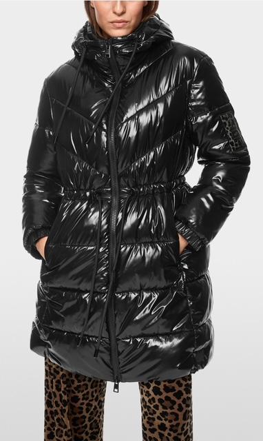 Manteau d’extérieur à la surface brillante et dans une matière durable. La coupe droite avec cordon de serrage à la taille assure une silhouette féminine. La capuche offre un confort supplémentaire et présente un imprimé léopard stylé à l’intérieur. Le manteau s’arrête juste au-dessus du genou et se ferme à l’aide d’une fermeture éclair. Fabriqué en polyamide recyclé et certifié « Rethink Together ».