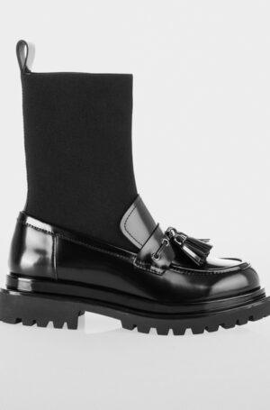 Cette chaussure basse élégante en cuir de veau haut de gamme est une version moderne du mocassin classique. Le cuir fin au brillant discret confère à cette chaussure une touche stylée, tandis que les petites pampilles décoratives soulignent le look typique du mocassin. La forme arrondie de la semelle et le talon bloc de 30 mm garantissent un confort et une démarche agréable. La tige tricotée dans le style d’une bottine apporte une touche tendance et originale au design.