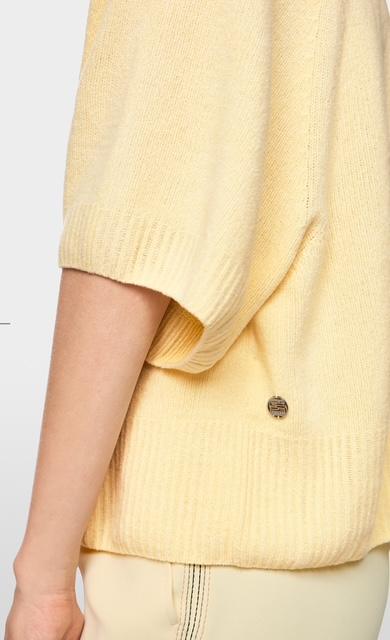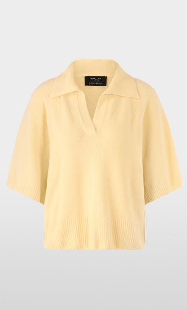 Polo tricoté au look oversize. Ce t-shirt présente des épaules tombantes, un col polo et un décolleté en V. Le mélange de matières haut de gamme, composé de coton et de viscose, garantit un confort agréable. Ce modèle est « tricoté en Allemagne » : le tricotage des fils sur des machines à tricoter ultramodernes et la finition des tissus sont effectués en Allemagne. Les différentes pièces, telles que les manches, le devant, etc., sont assemblées dans des entreprises partenaires européennes.