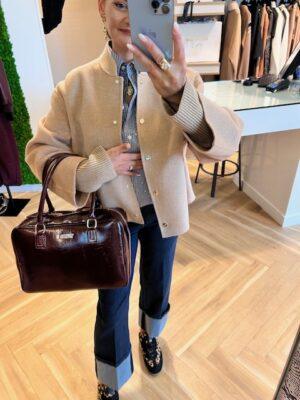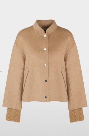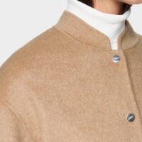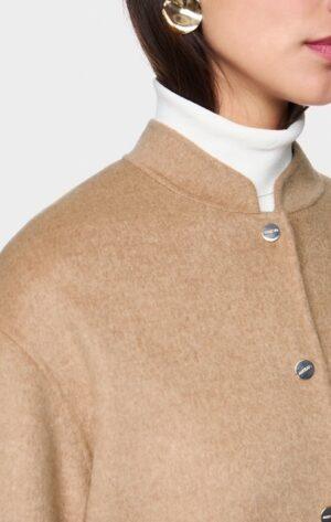 La veste en laine douce séduit par son look bomber. Sa silhouette oversize et ses épaules tombantes lui confèrent un look décontracté. Elle se ferme à l’aide de boutons-pression et possède des poignets pour plus de confort.