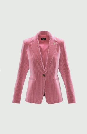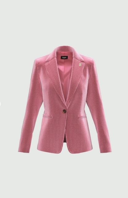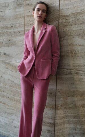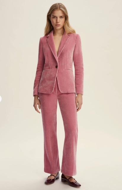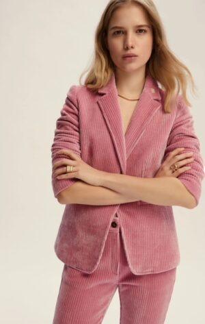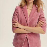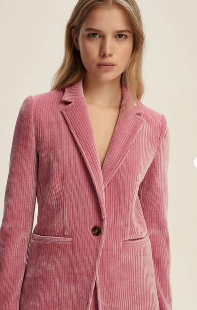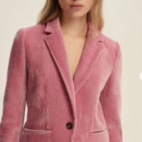 Élégant et naturel : le nouveau blazer en velours côtelé arbore une coupe féminine et un corsage ajusté. La broche griffée et les surpiqûres apparentes apportent une touche raffinée qui sublimera votre look.