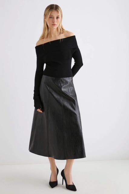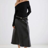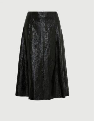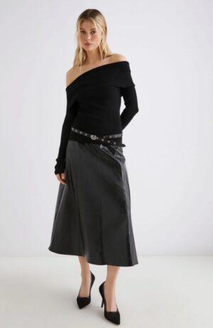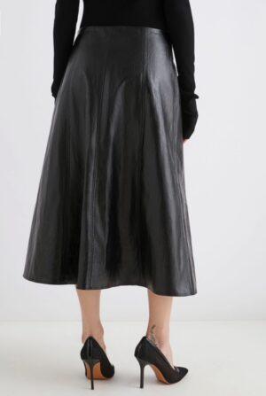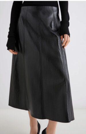 Ligne évasée et panneaux avec surpiqûres apparentes : cette nouvelle jupe combine des lignes féminines classiques avec la touche urbaine du sergé enduit. À essayer avec le trench assorti, dans un mélange de couleurs et de matières surprenant.
