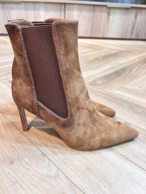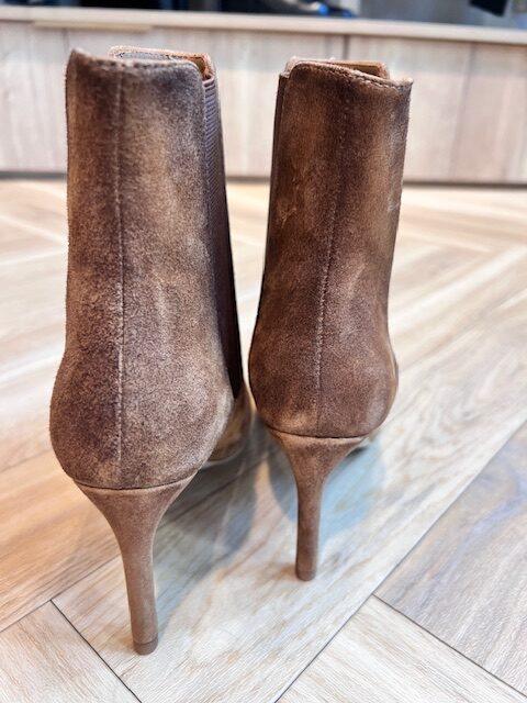 Une bottine parfaitement coupée, au look moderne, ultra affuté. Son talon intermédiaire de 8cm lui confère confort et stabilité.