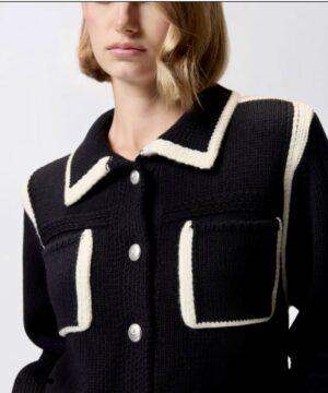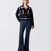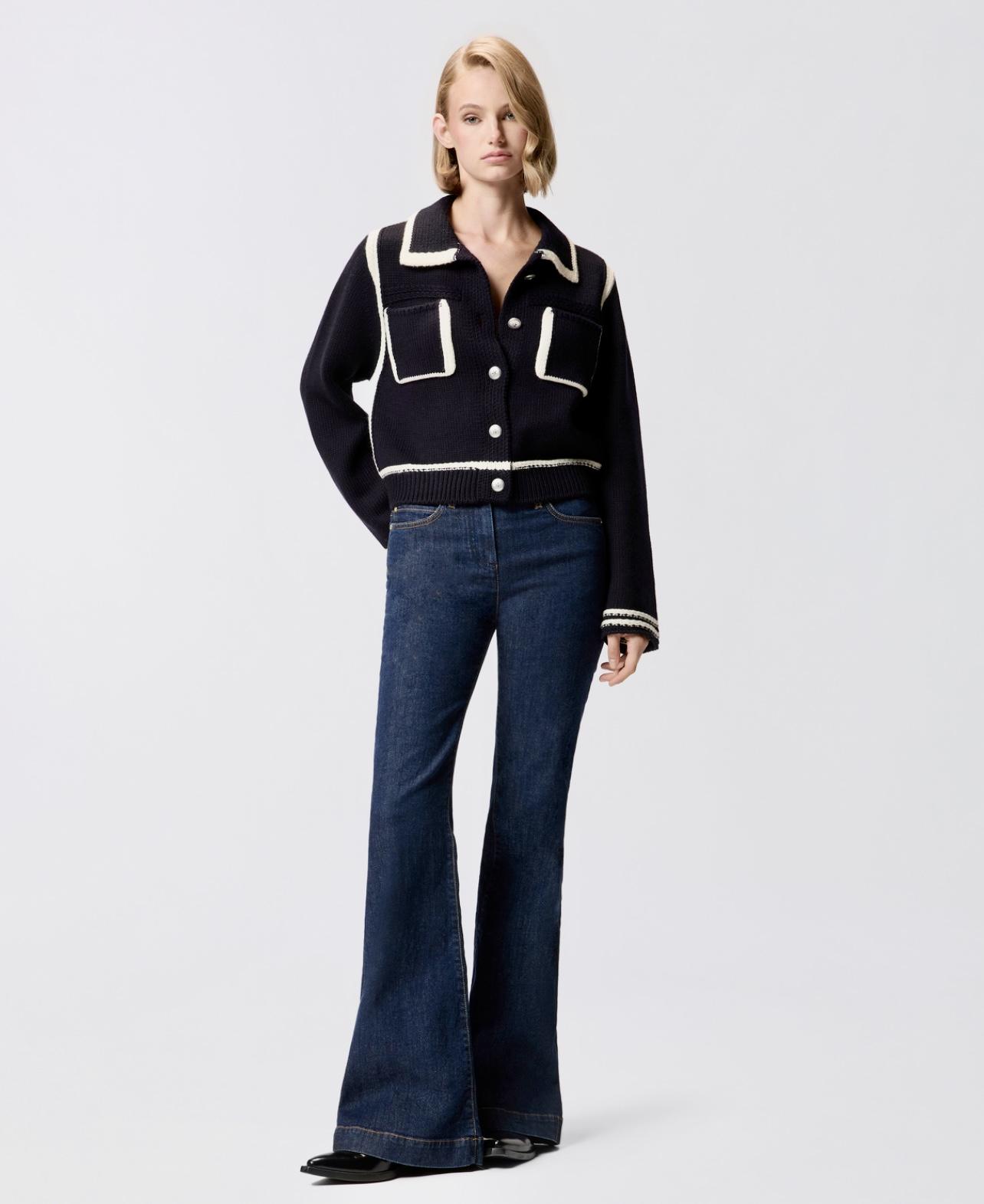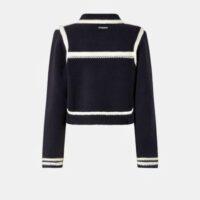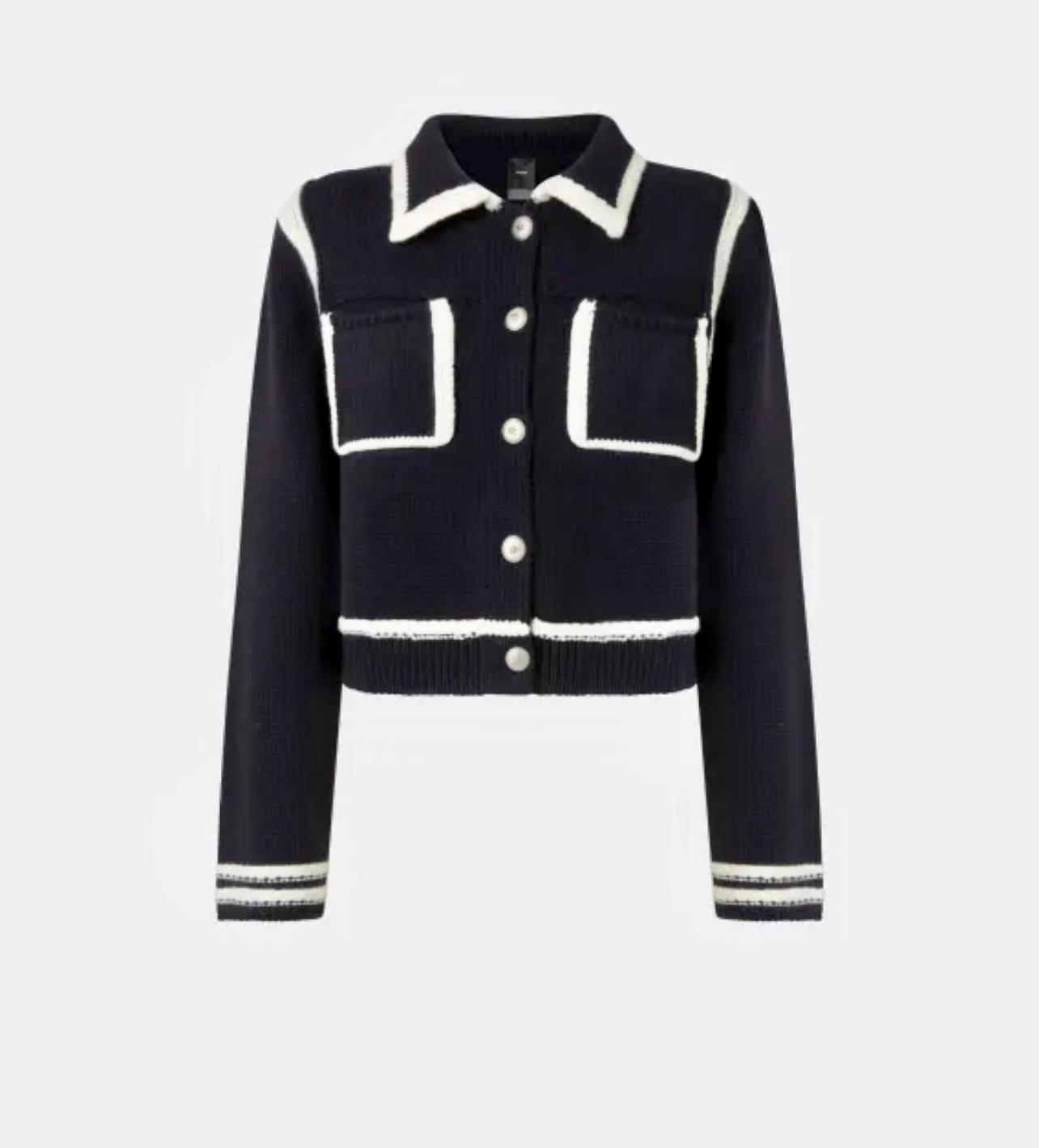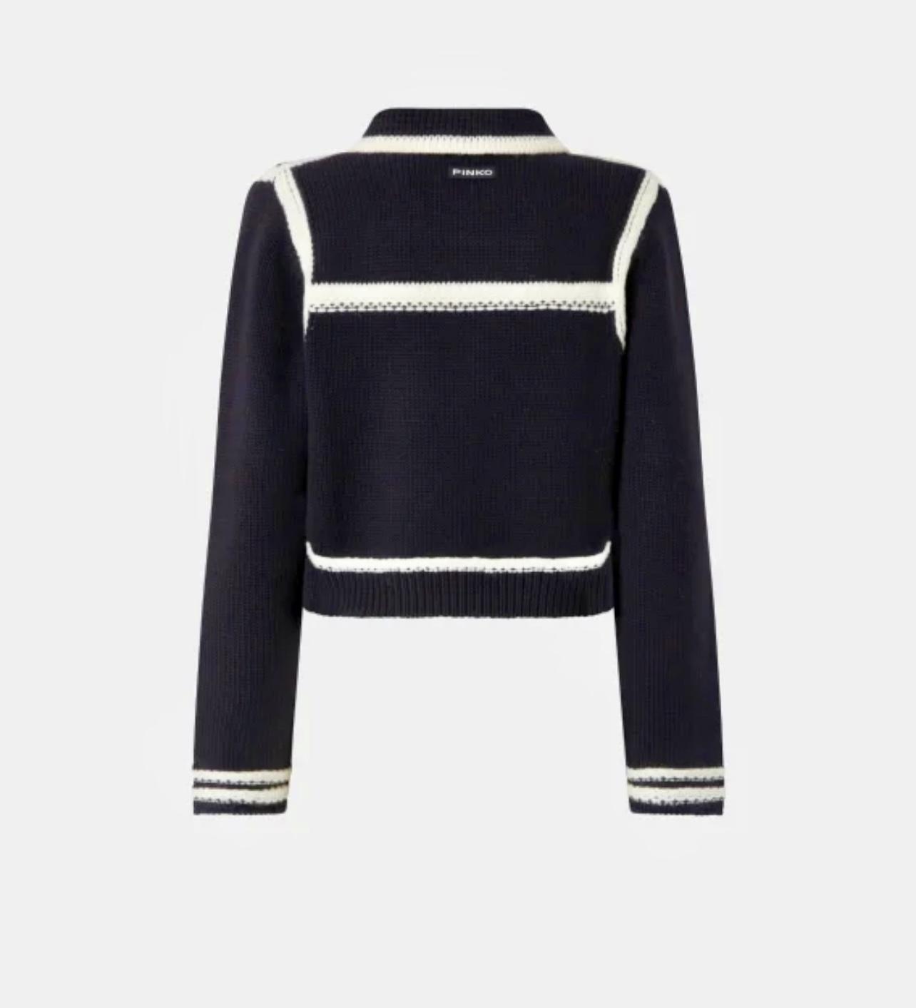 Cardigan style preppy en laine mérinos fine et douce. Modèle ponctué de bandes contrastantes rehaussant les poignets, l’empiècement, la base, le col et les poches sur le devant. L’étiquette ton sur ton à logo PINKO sur la nuque apporte la touche finale. Ce modèle a été traité pour minimiser le risque de boulochage et offrir plus de douceur et de durabilité. Fermeture avec boutons en métal ornés d’une étoile sur le devant. Pratique, original et tendance : ce modèle deviendra un véritable passe-partout de votre garde-robe.