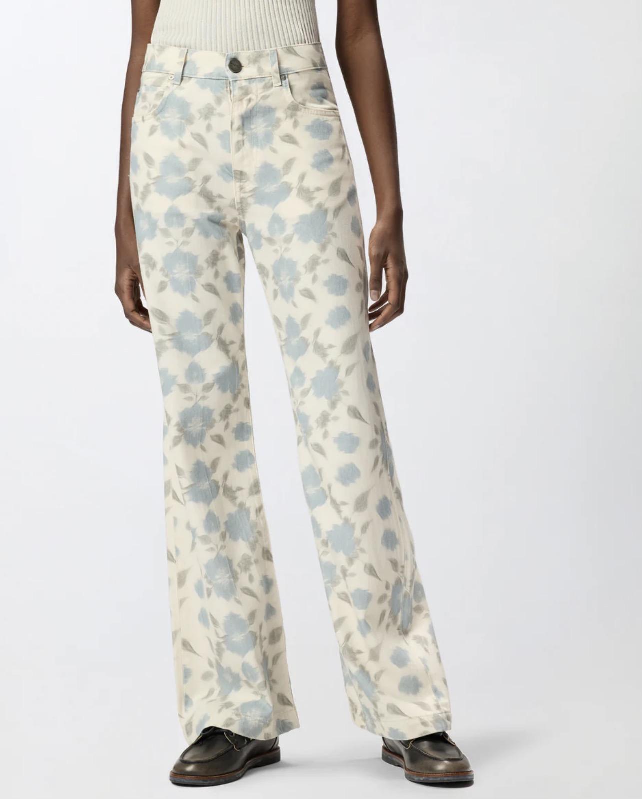 • Pantalon cinq poches wide leg doublé, rehaussé du logo Love Birds brodé sur l’une des poches arrière et doté d’une fermeture par zip pratique sous patte sur le devant avec bouton apparent. Confectionné dans un bull léger de coton et lyocell, ce modèle est orné de l’imprimé Cottage Flower all-over composé de fleurs raffinées aux teintes délicates. Il peut être porté de deux façons : boutonné pour une coupe taille haute ou déboutonné et à taille rabattue pour un style taille basse plus décontracté. Faites de votre tenue une œuvre d’art en portant ce pantalon avec la chemise assortie pour un total look original qui ne passera pas inaperçu.