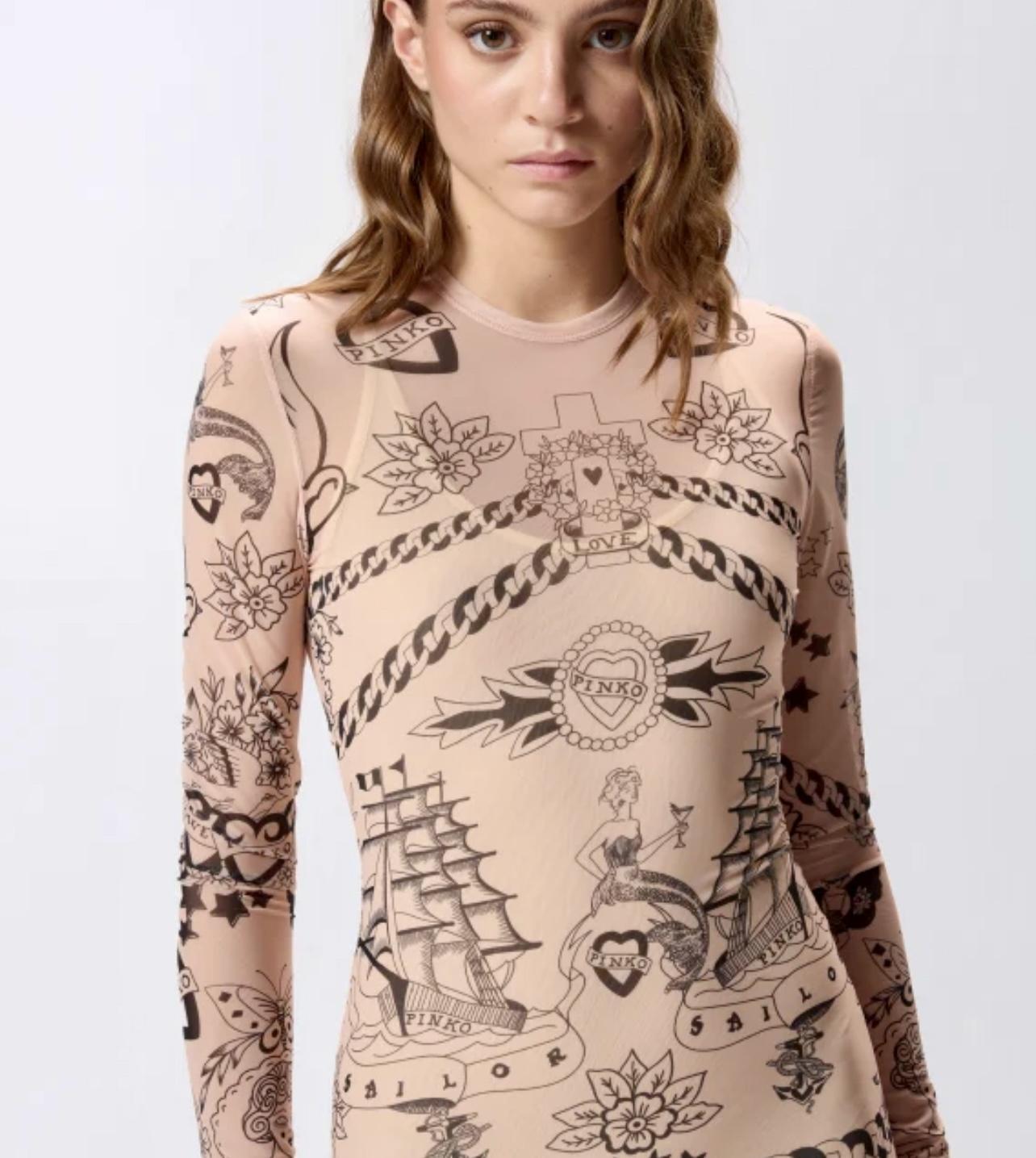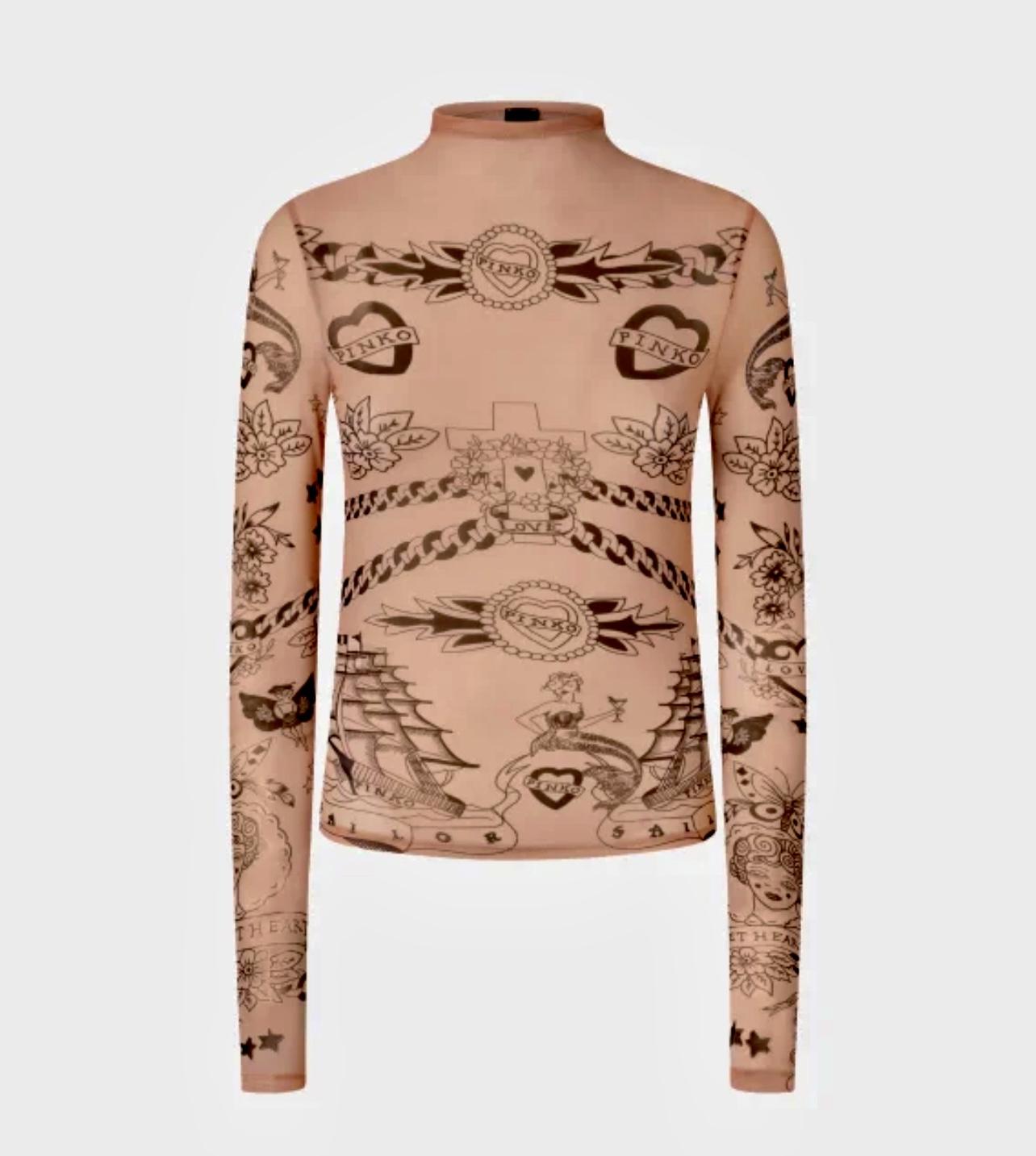 T-shirt ajusté en tulle à manches longues et col cheminée. Le tulle indémaillable est un tissu très résistant, traité de telle manière que les mailles ne peuvent se défaire en cas de déchirure. L’imprimé placé qui orne ce vêtement s’inspire quant à lui de l’univers marin et témoigne du savoir-faire de PINKO en matière de tissus et de techniques de fabrication complexes. Avec ce top, parfait sous une veste avec un pantalon couture ou un jean original, rehaussez l’élégance et la féminité de n’importe quelle tenue.