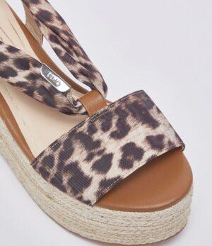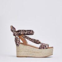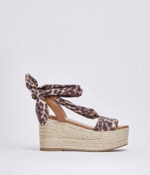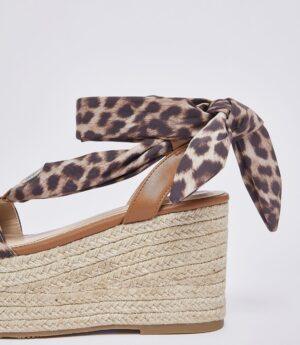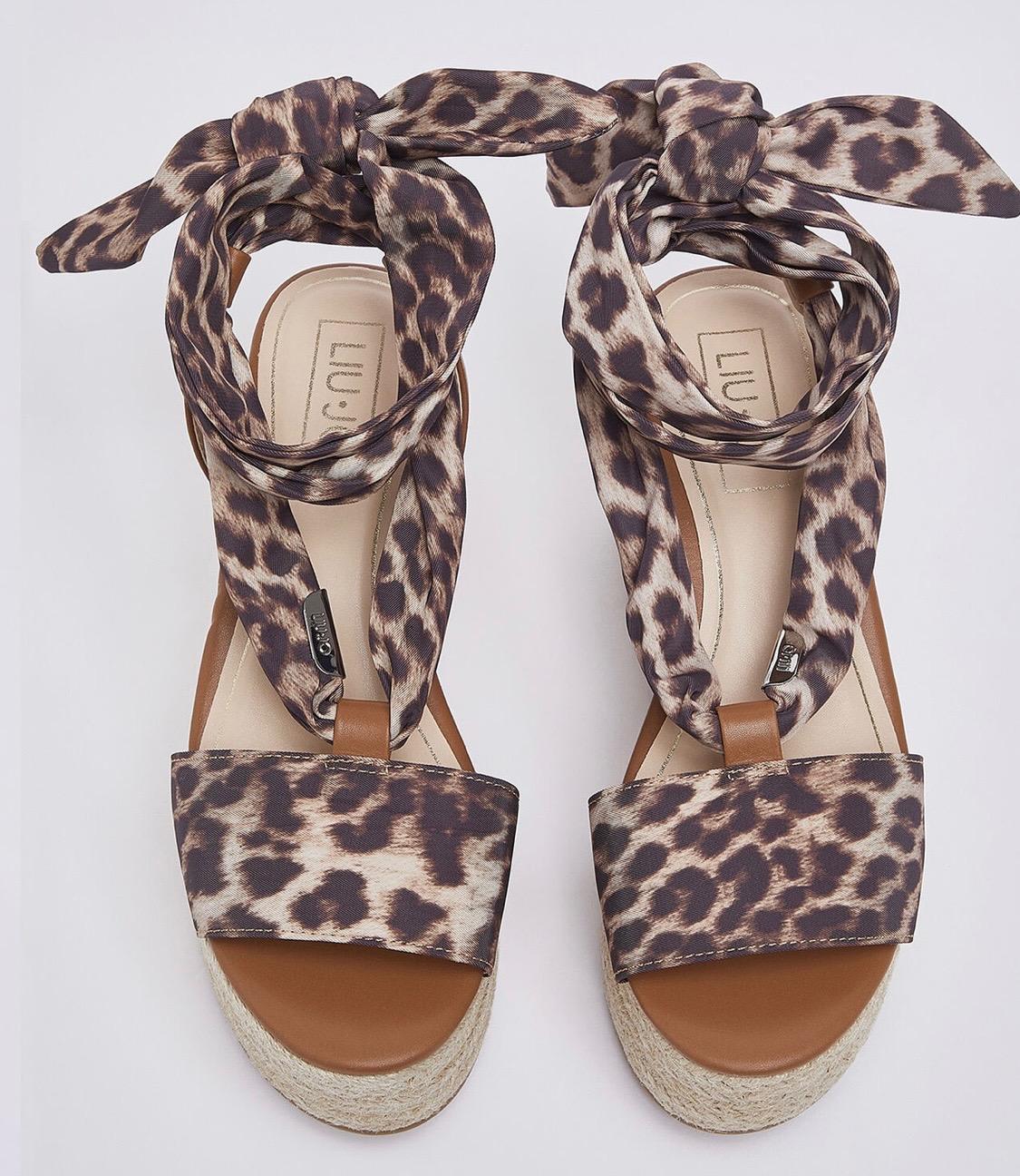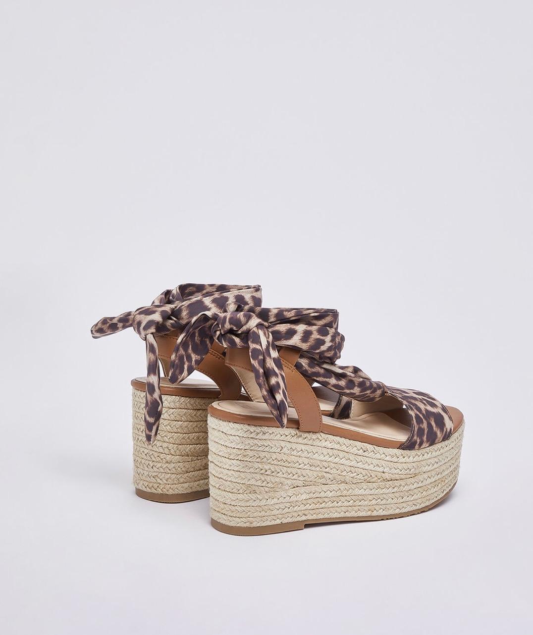 • Sandales à semelle compensée avec lanières en imprimé animalier